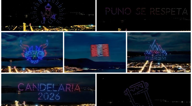 El cielo puneño se iluminó por primera vez con un impresionante espectáculo de drones que cautivó a miles de asistentes