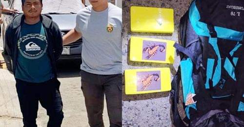 El bus iba con dirección a Desaguadero, frontera con Bolivia.Durante la revisión se descubrió que Ore guardaba la droga en tres empaques tipo ladrillo, con stickers de escorpión, dentro de una maleta de mano.