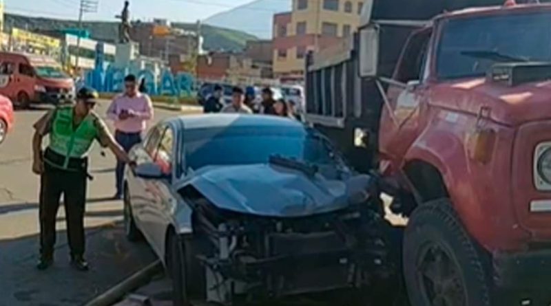 Conductora confunde el freno con acelerador y estrella su auto contra volquete