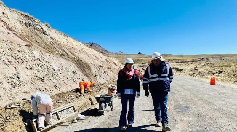 Yesenia Choquehuanca realiza inspección a avance de obra del tramo II de la carretera Viscachani, Callalli, Sibayo, Caylloma