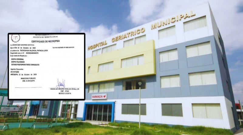 El Instituto de Medicina Legal del Ministerio Público emitió el informe de necropsia correspondiente al fallecimiento de Patricia Sucacahua Valencia, ocurrido durante una intervención de liposucción realizada en el Hospital Geriátrico de Cerro Colorado.